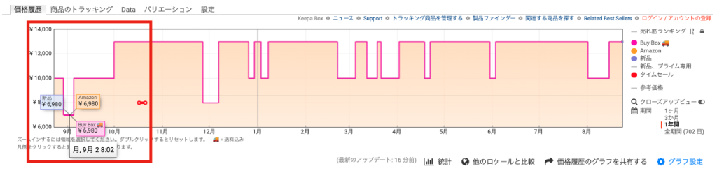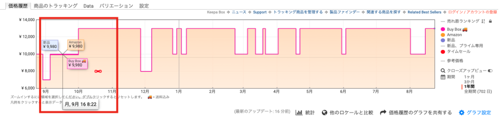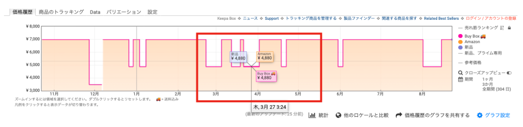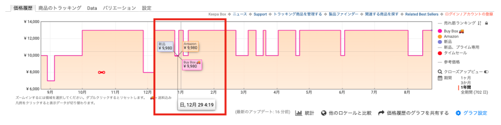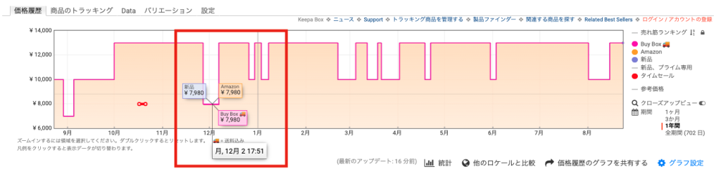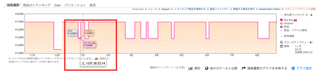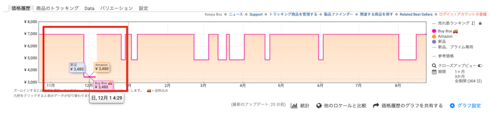 - 最安値(割引率50%) → スマイルセール、ブラックフライデー(8月、11月)