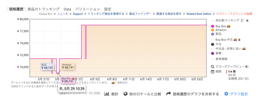 「Keepa」というツールで独自に調査。