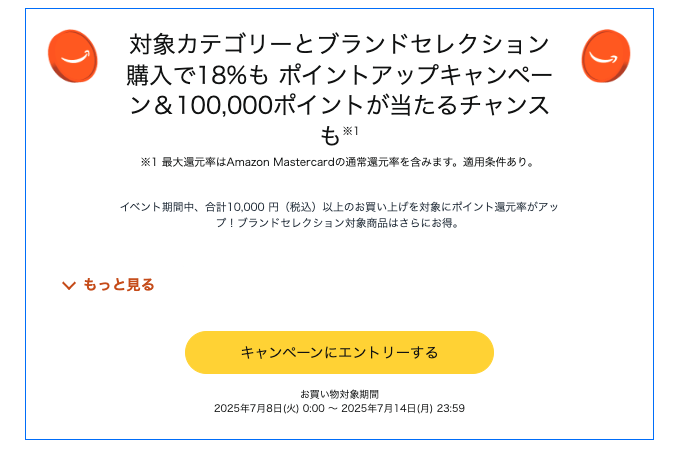 7/31(木)までにAmazon Mastercardで決済すると