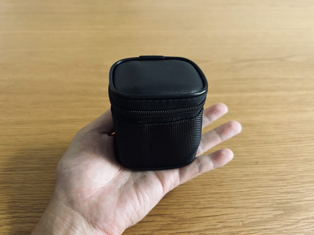横幅はAirPods Proくらいで、高さは七味より少し低い程度の手のひらにのるくらいのサイズ。